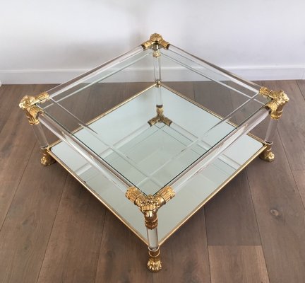 French Acrylic Glass Coffee Table With Gilt Lion Heads Feet 1970s For Sale At Pamono